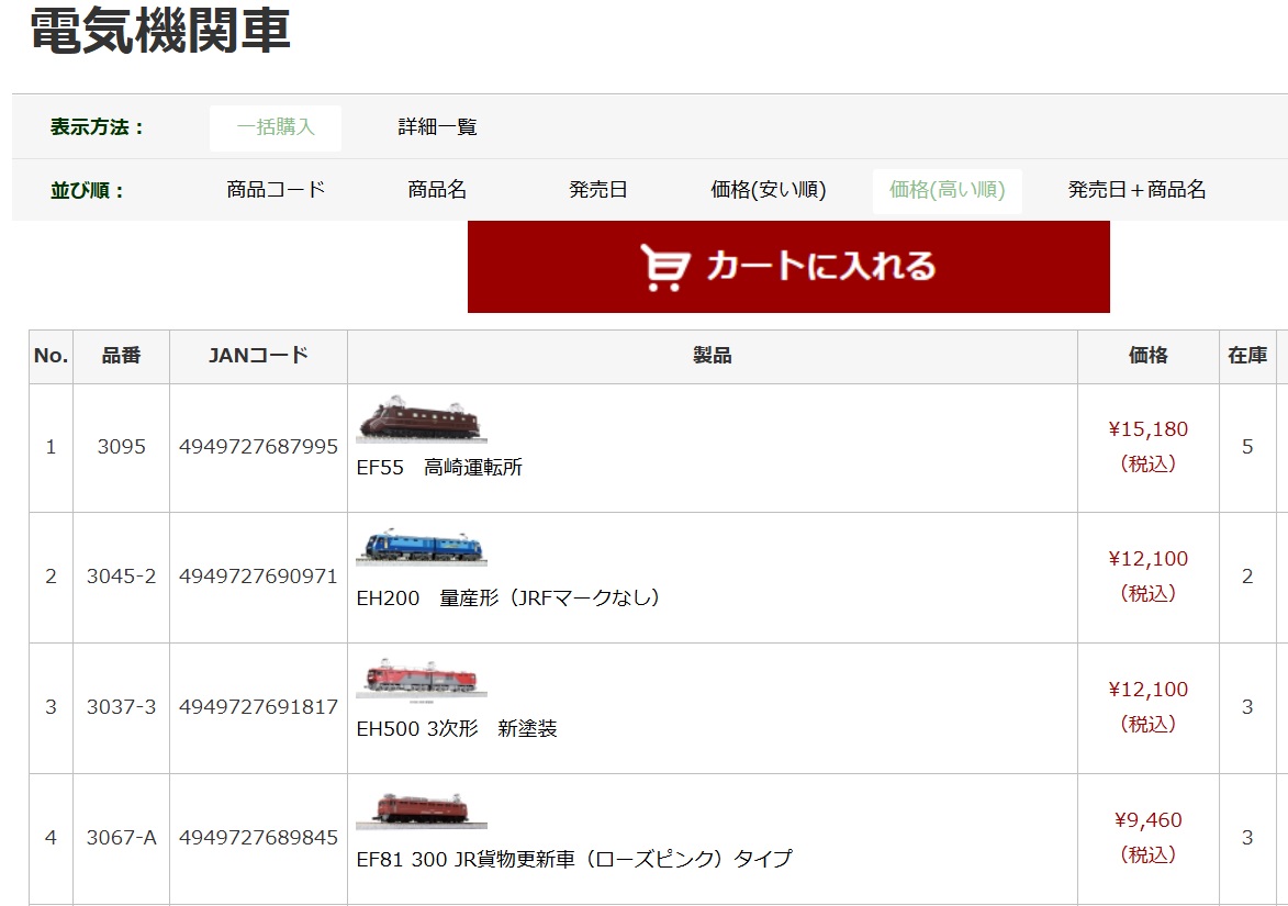 価格は、ホビーセンターカトー(税込み、送料は別途かかります)
