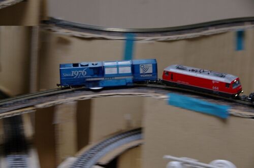 TOMIXのマルチレールクリーニングカーは、とても優れもので気に入っています。 以前にもご紹介したように3台持っています。 でも、我が家のレイアウトは最小曲線半径が150Rなので、通過できません。 TOMIXのお客様相談室に問い合わせをしたことがあるのです…